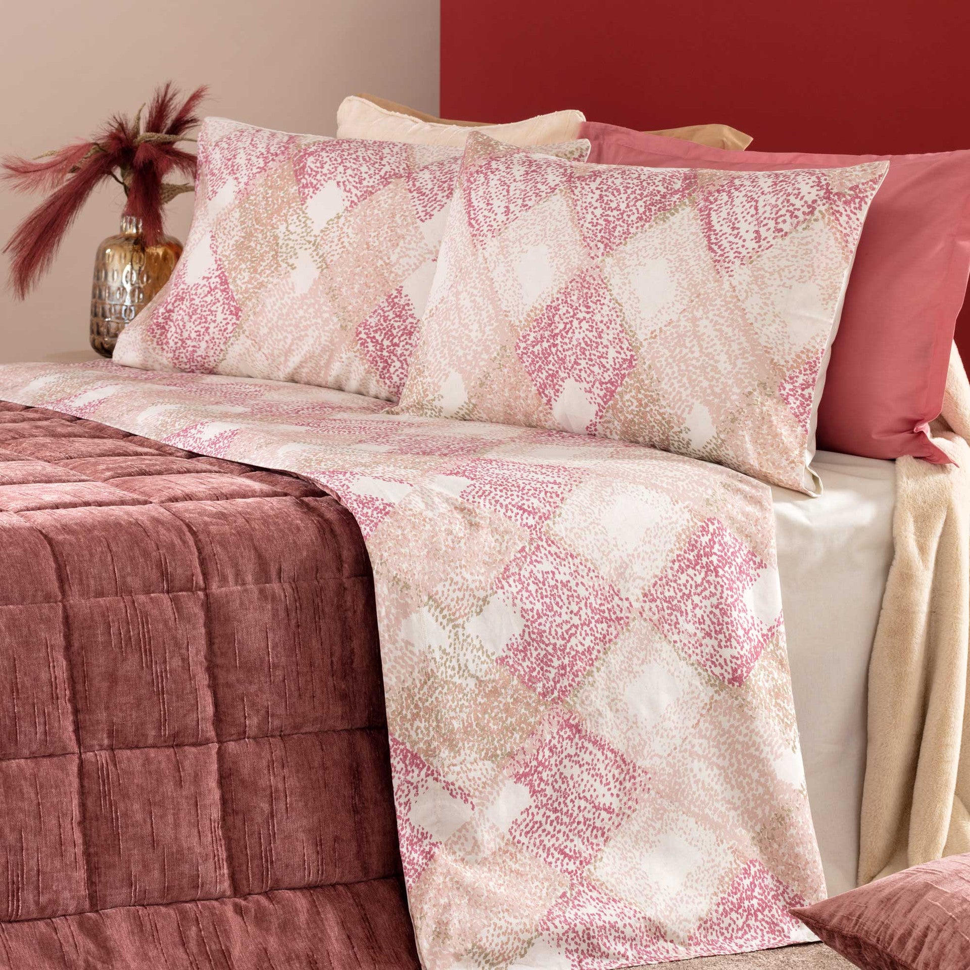 Disponibile in tre misure — matrimoniale, piazza e mezza e singolo — si adatta con versatilità a diverse esigenze d’arredo. Il completo comprende il lenzuolo superiore, un sotto con angoli in tinta unita coordinata e una o due federe a seconda del formato. La versione matrimoniale (250x290 cm) include due federe da 50x80 cm, quella a una piazza e mezza (180x290 cm) e la singola (160x290 cm) prevedono una sola federa.