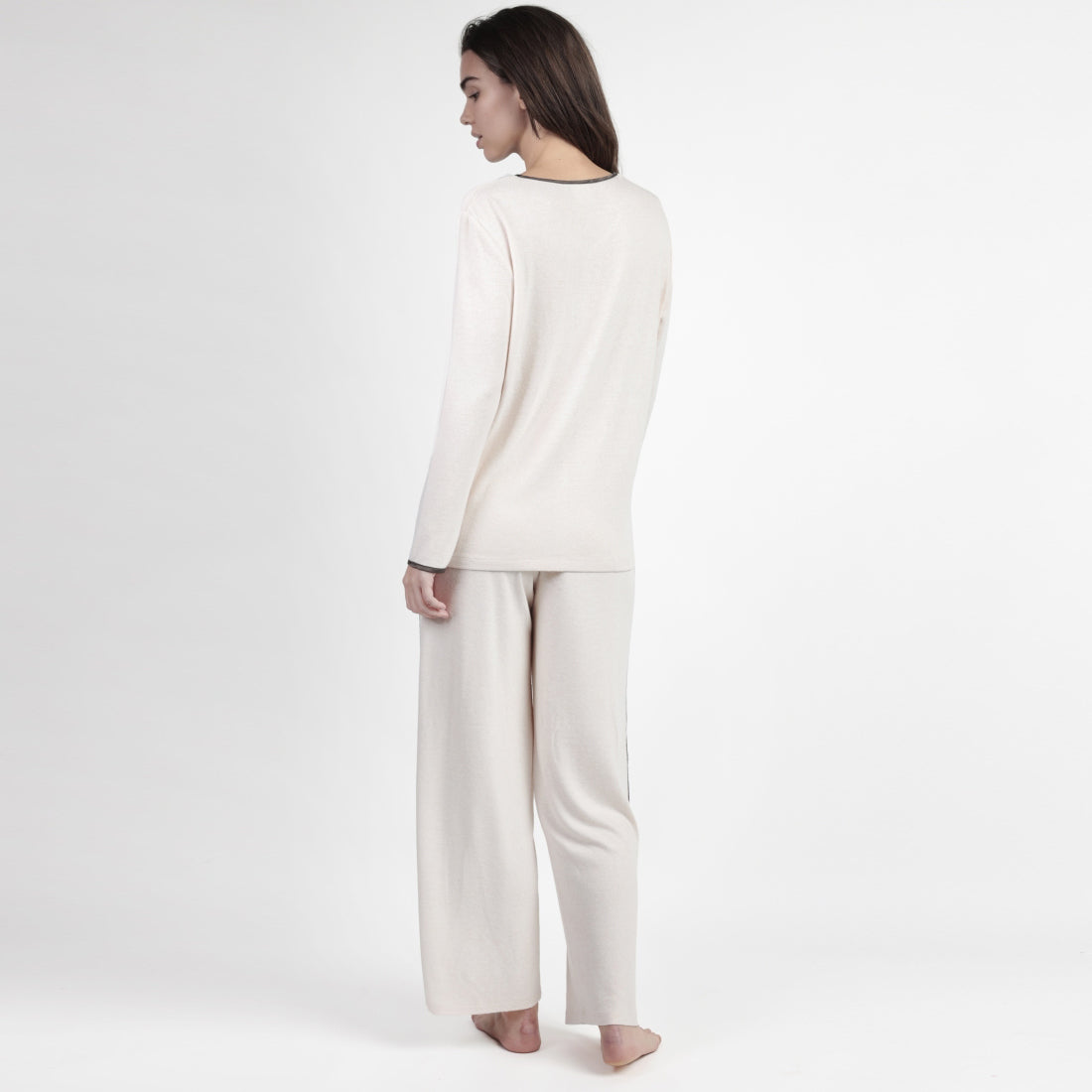 * Pigiama in maglia di cotone, maniche lunghe, scollo a V e pantaloni lunghi.