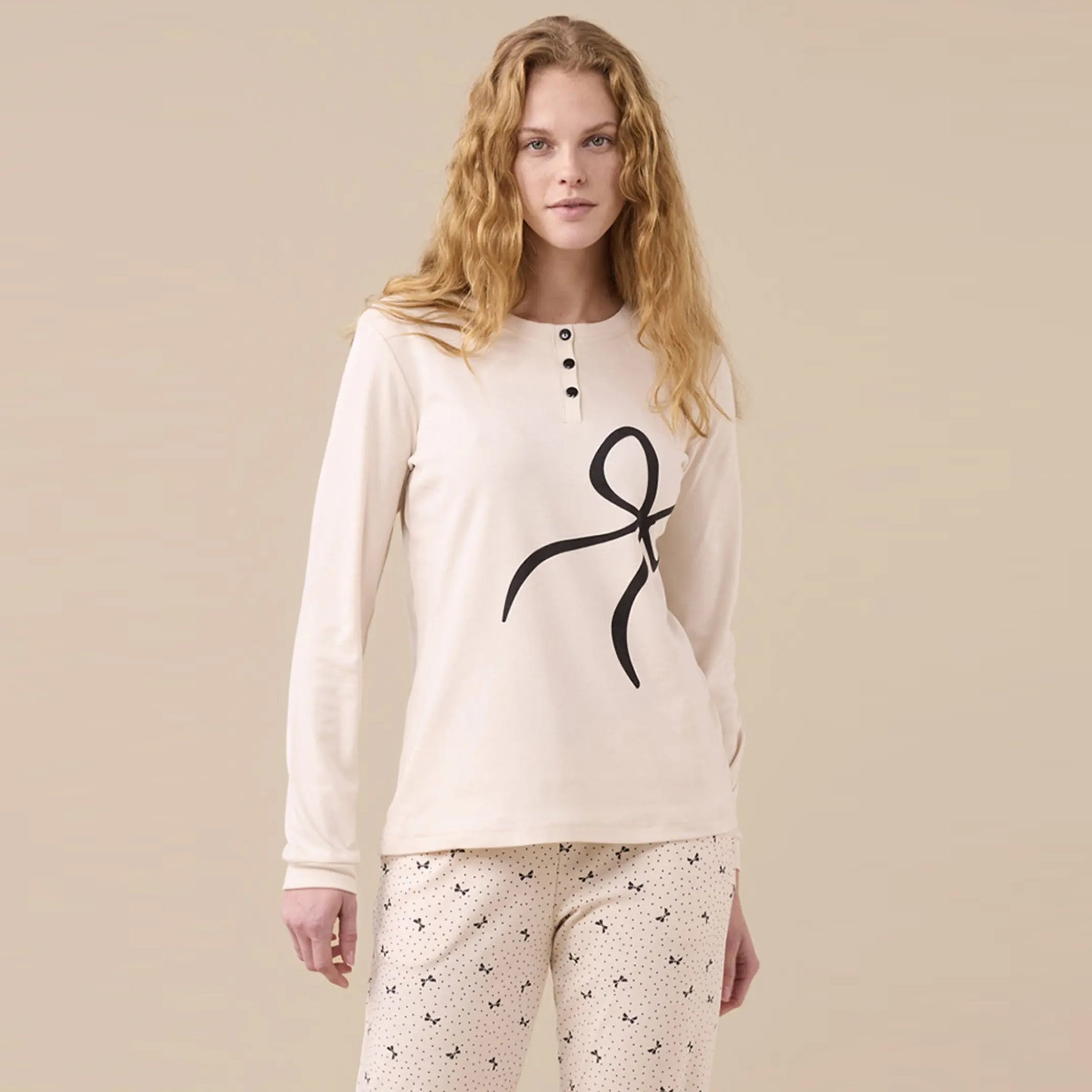 Pigiama donna caldo cotone big fiocco con polsini