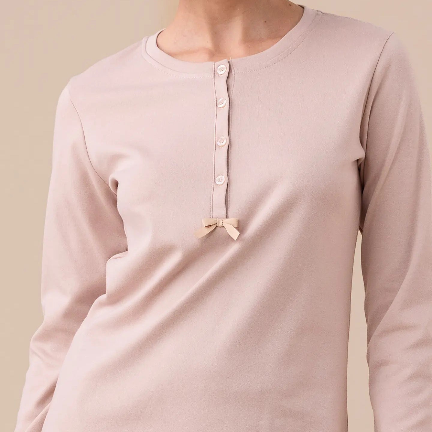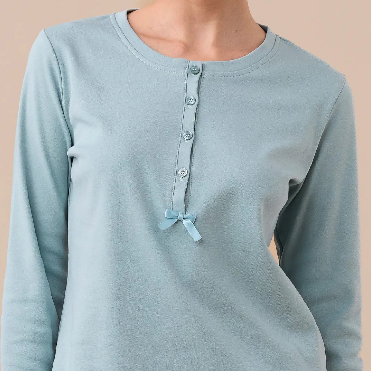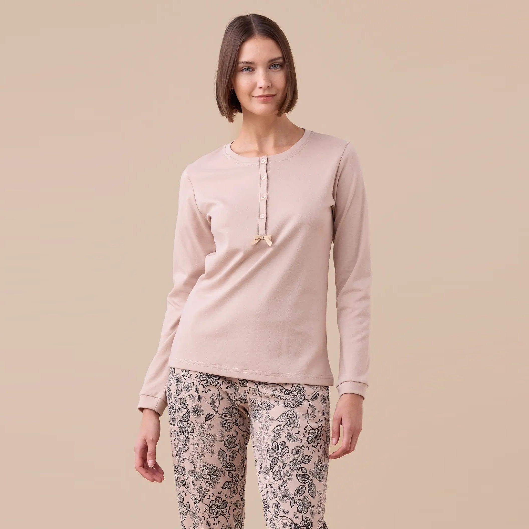 FA9265 - Pigiama donna in caldo cotone con pantalone fantasia e maglia tinta unita 5 bottoni