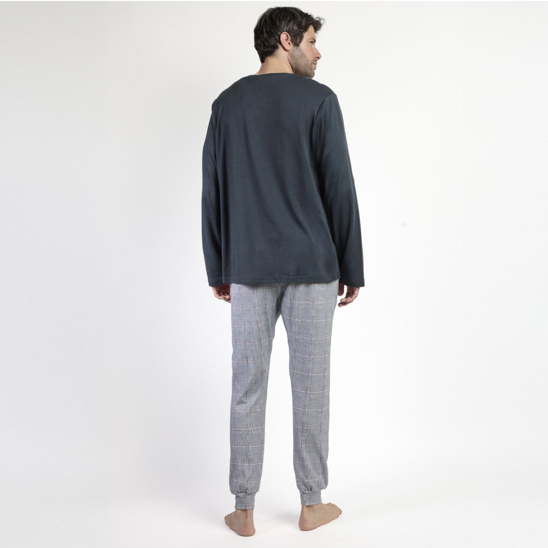 63755-0 - Pigiama uomo caldo cotone con polsini e pantalone principe galles