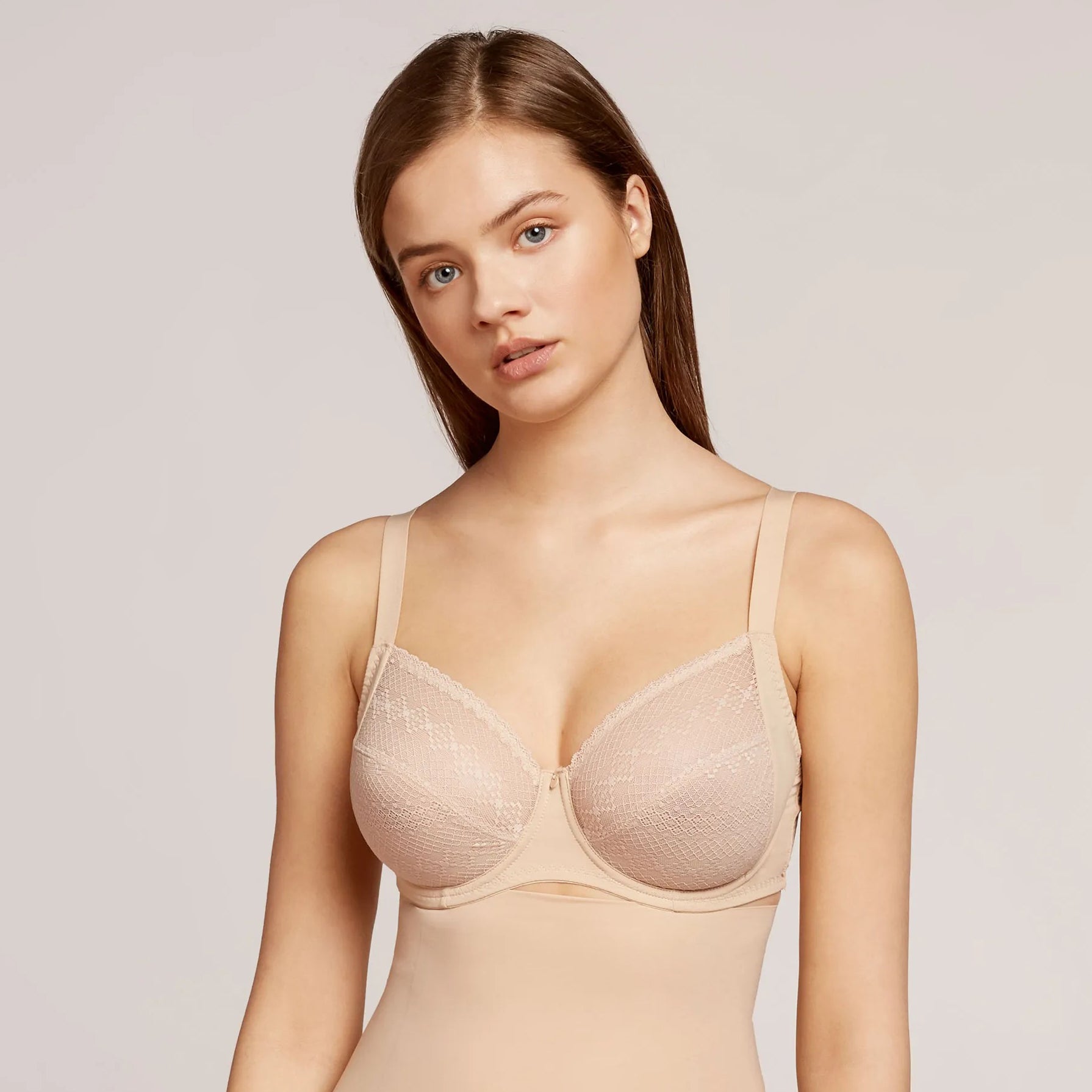 Reggiseno massima sostegno con ferretto e senza imbottitura in tessuto di pizzo.