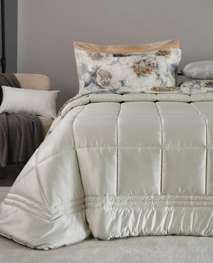 Disponibile nella variante Tortora, calda e sofisticata, questa trapunta trasforma la camera in un luogo di accoglienza elegante. Un capo che unisce durata, qualità e sobrietà regale, restituendo alla stanza il fascino della tradizione rivisitata in chiave contemporanea.