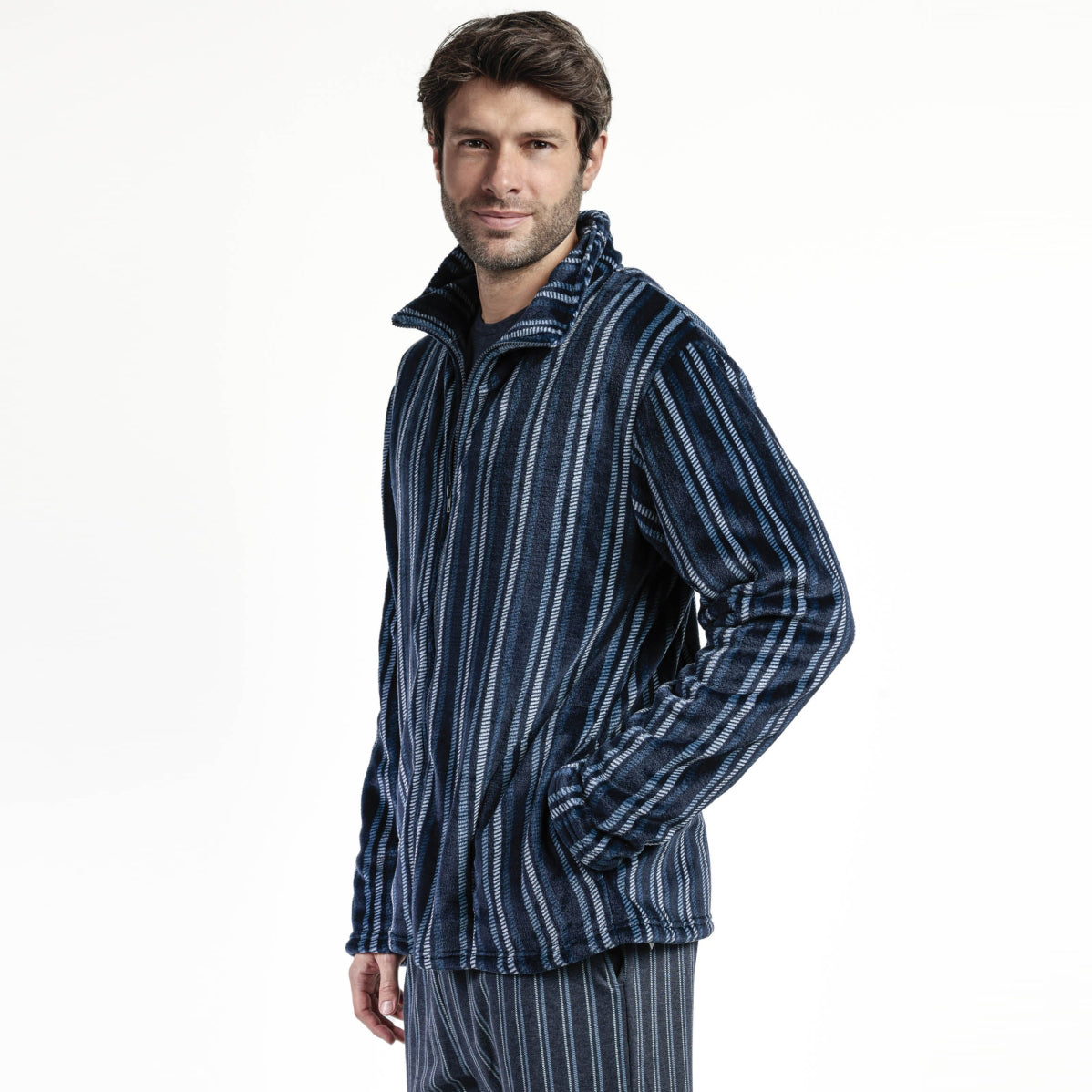 Presenta una chiusura con cerniera, un design a righe e tasche laterali, personalizzato con il marchio Stay At Home. Morbido e piacevole al tatto, offre una sensazione di comfort in ogni momento.