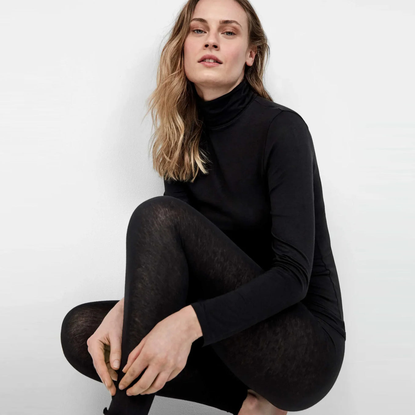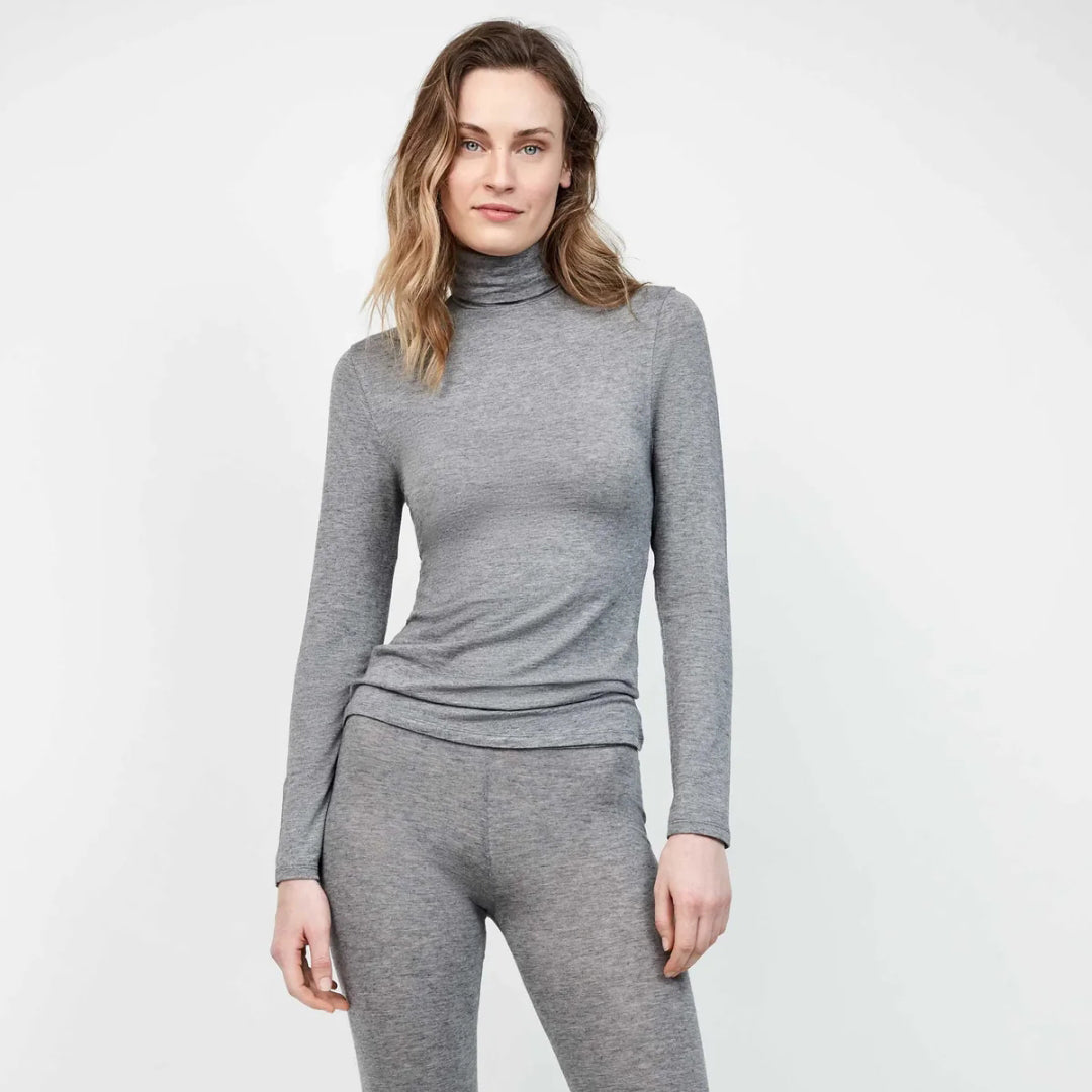 Maglietta leggera con collo alto e maniche lunghe. Tessuto sottile, morbido e caldo con miscela di lana e viscosa. Taglio dritto e carattere versatile per essere indossato sia all'interno che all'esterno.