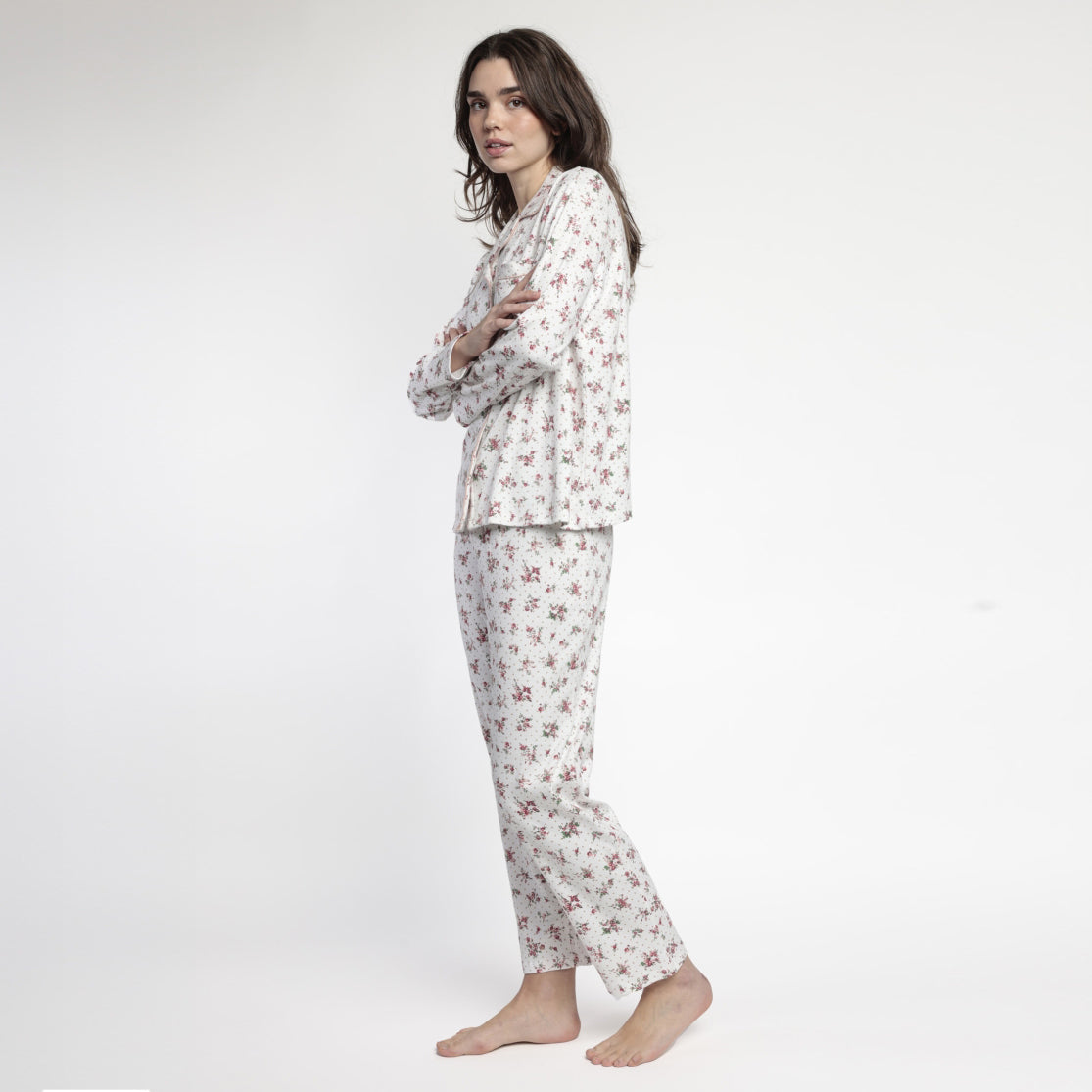 63601-0 - pigiama caldo cotone aperto avanti con fiorellino