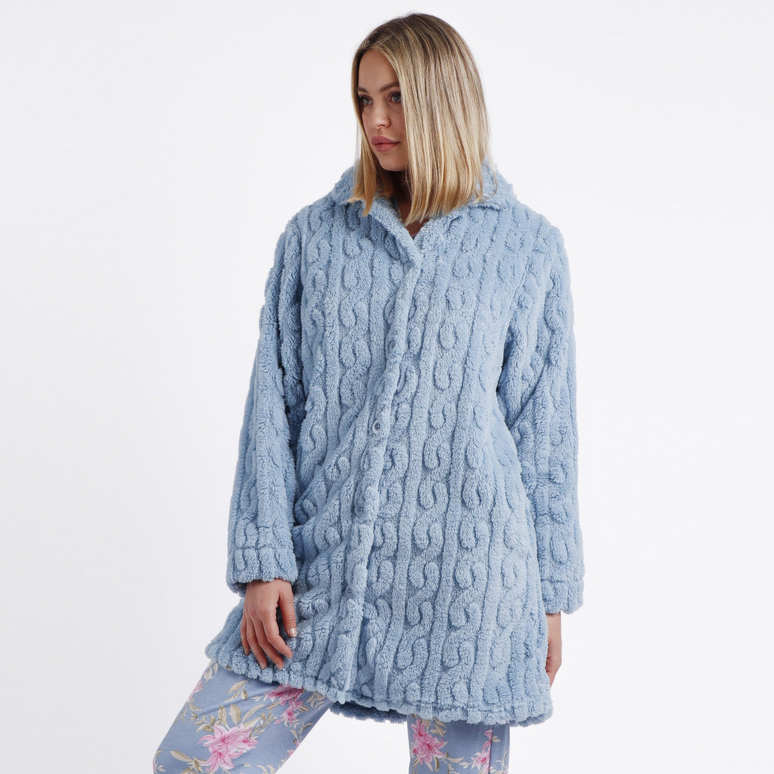 67040-0 - Vestaglia in coral effetto treccine con bottoni
