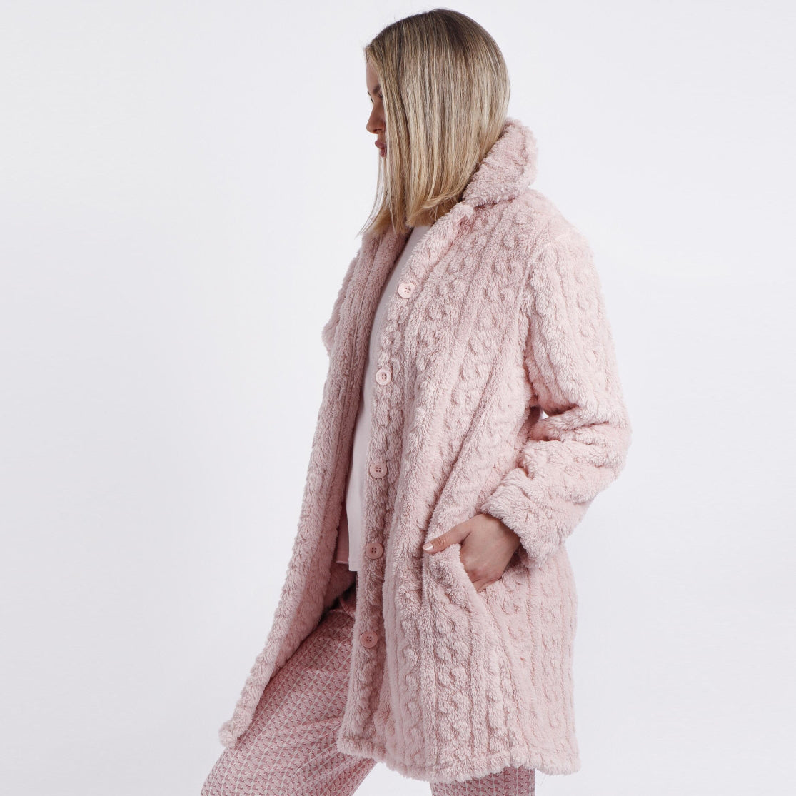 VESTAGLIA IN CORAL EFFETTO TRECCINE CON BOTTONI