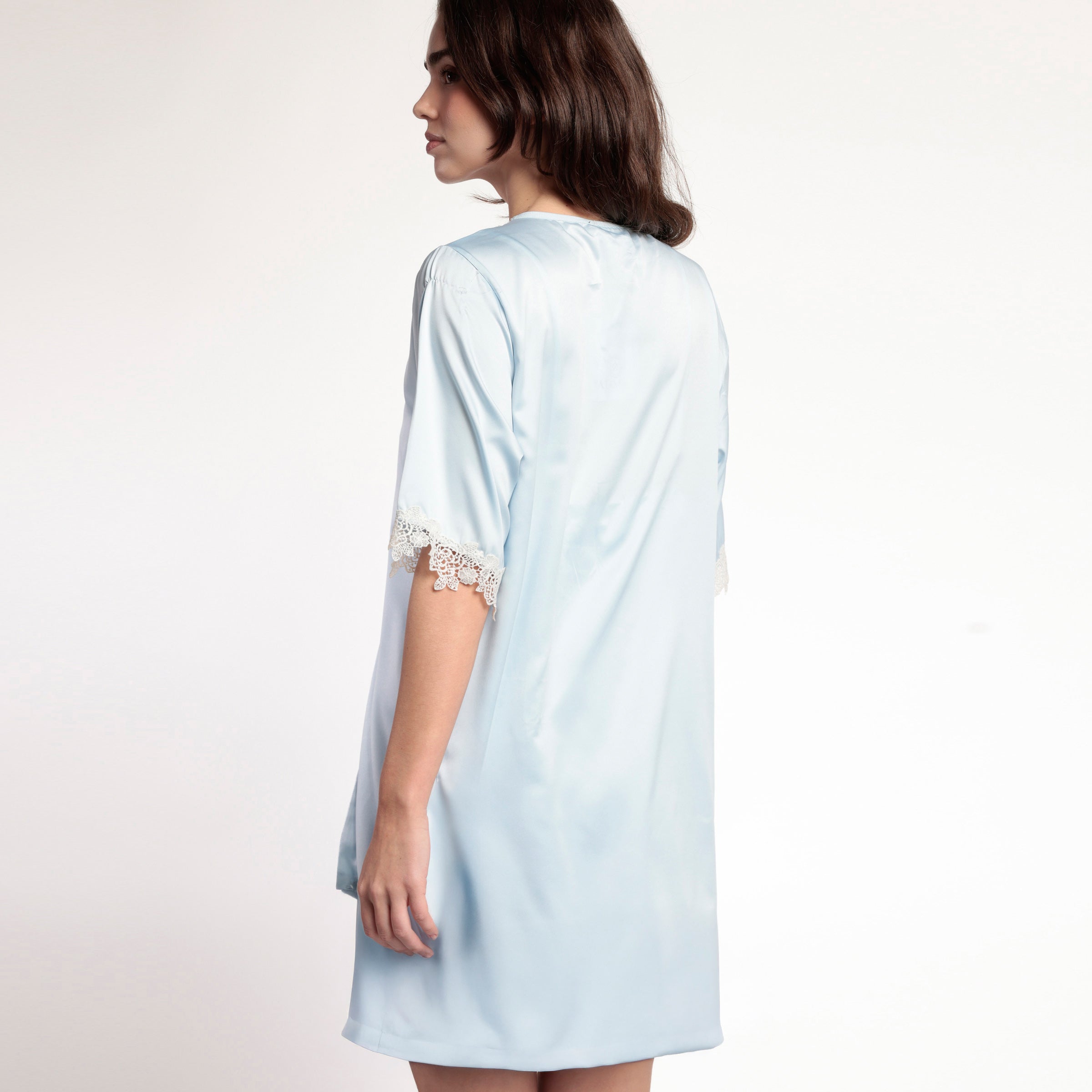 Vestaglia Admas sciallata in raso e pizzo con manica a tre quarti - 67230-0