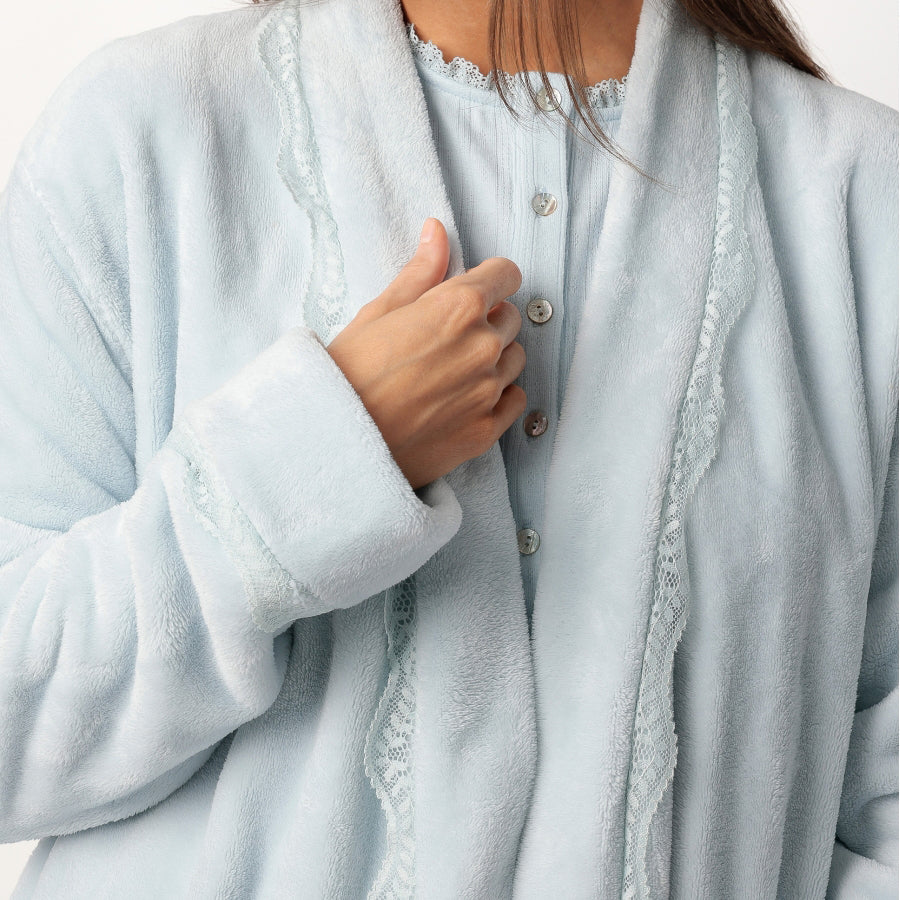 67289-0 - Vestaglia sciallata in coral con dettaglio in macramè sul bordo