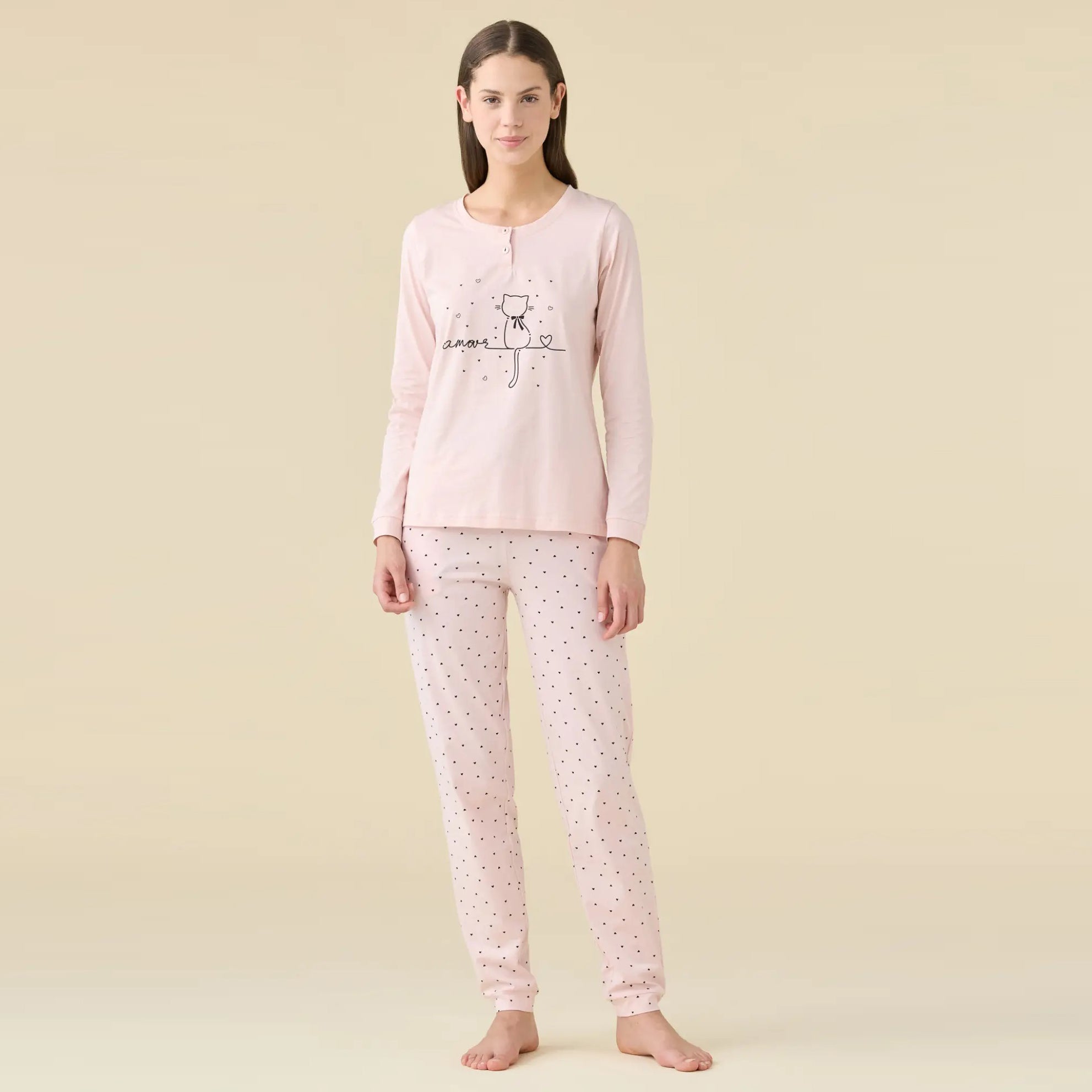 FA9464AB - Pigiama donna manica lunga con collo a due bottoni