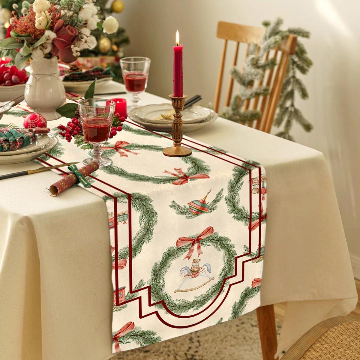Perfetto per decorare la tavola durante pranzi e cene natalizie, il runner Dondolo regala un’atmosfera calda e accogliente, rendendo ogni momento di festa ancora più speciale.